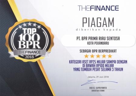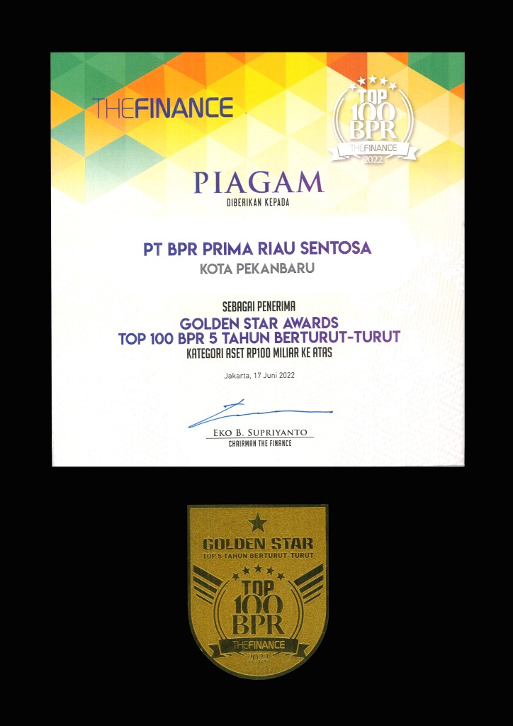 Penghargaan diterima oleh PT BPR Prima riau sentosa pada tahun 2022 yaitu The Finance TOP 100 Sekaligus mendapatkan Golden Star Awards TOP 100 BPR 5 Tahun Berturut-Turut Kategori Aset Rp. 100 Miliar ke atas.