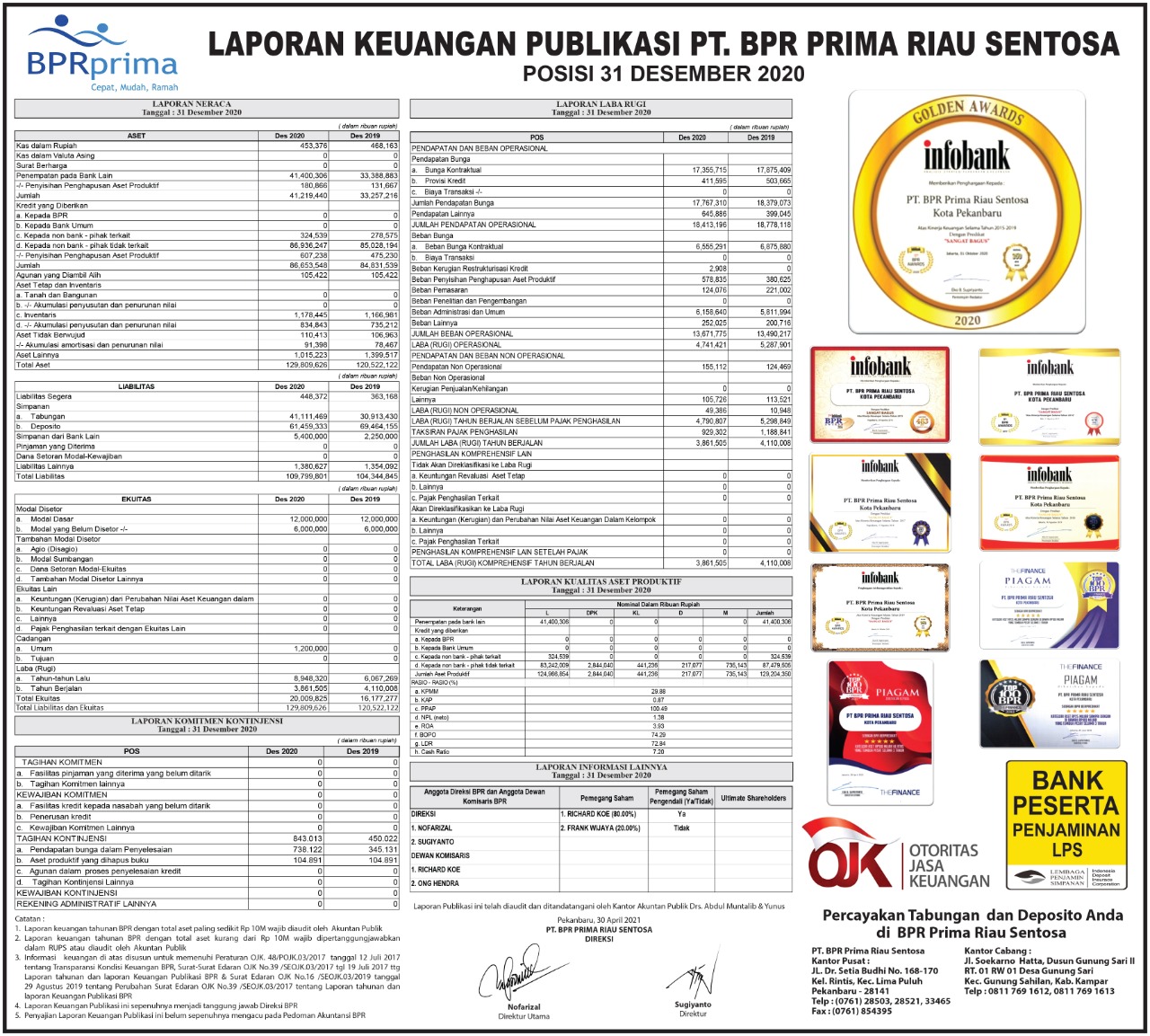 Laporan Publikasi BPR Prima Riau Sentosa Bulan Desember 2020