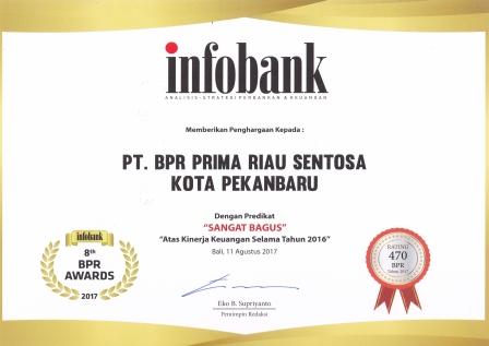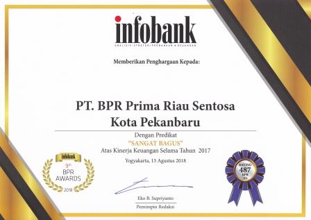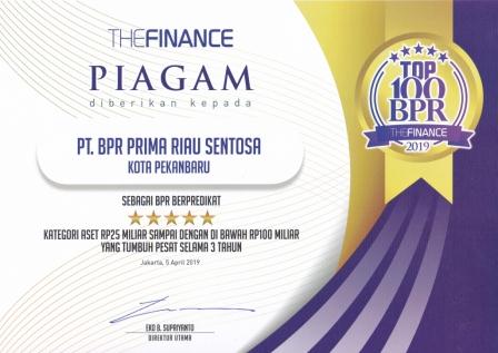 Penghargaan diterima oleh PT BPR Prima riau sentosa pada tahun 2022 yaitu The Finance TOP 100 Sekaligus mendapatkan Golden Star Awards TOP 100 BPR 5 Tahun Berturut-Turut Kategori Aset Rp. 100 Miliar ke atas.
